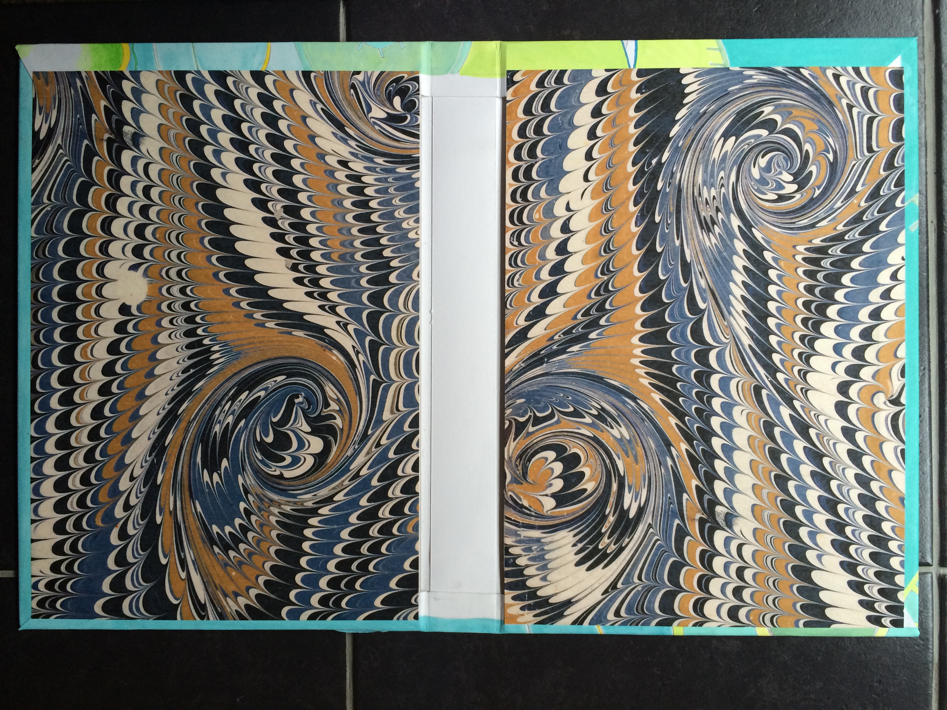 End papers gone in using copies of traditional marbled paper created in Letchworth.
