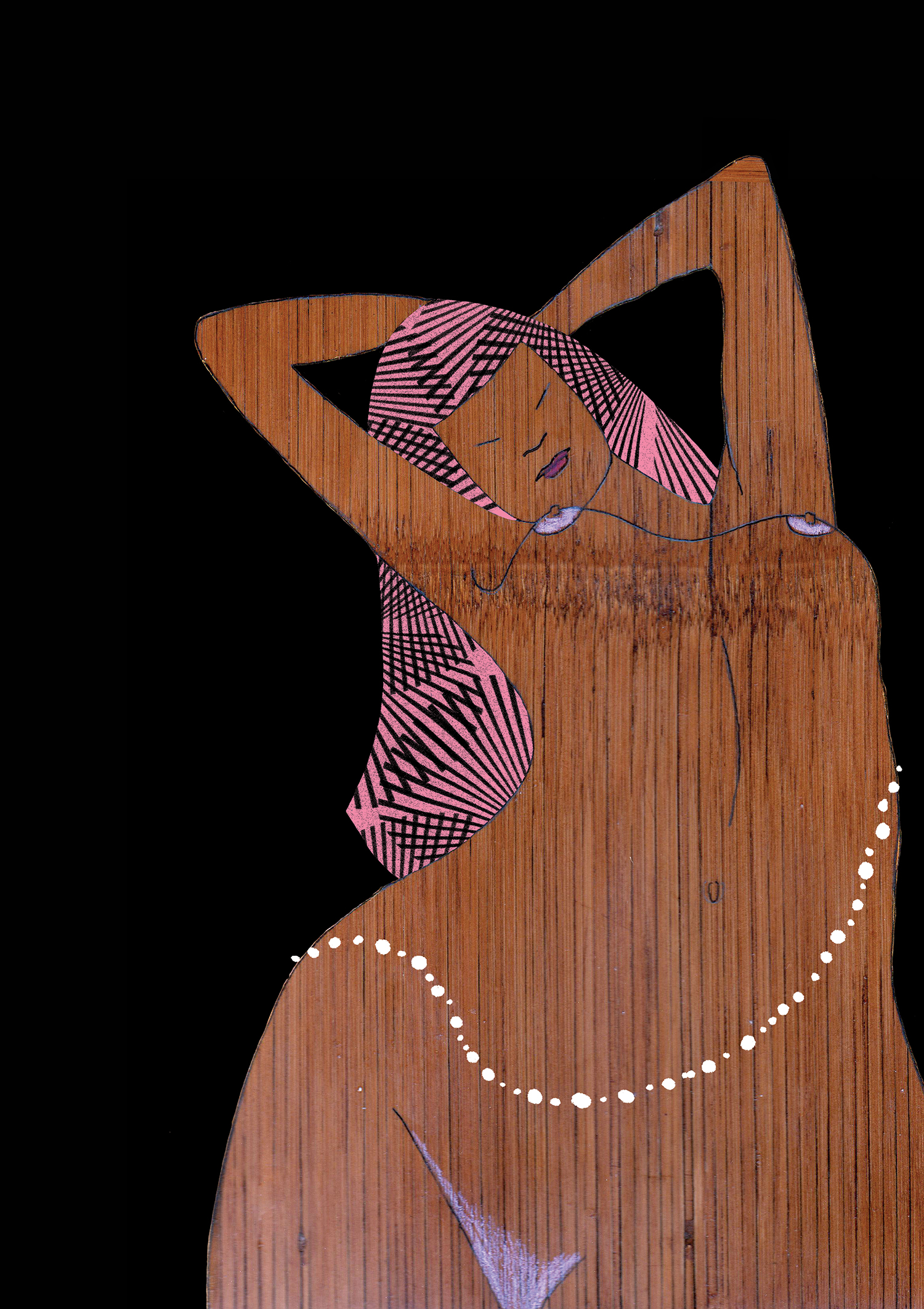 Exhibition of art work created by Sas and Yosh for a ‘A One Night Stand’ – Showcasing artwork and prints from our erotic collection. – Mixed media hand drawn and digital illustration on printed canvas