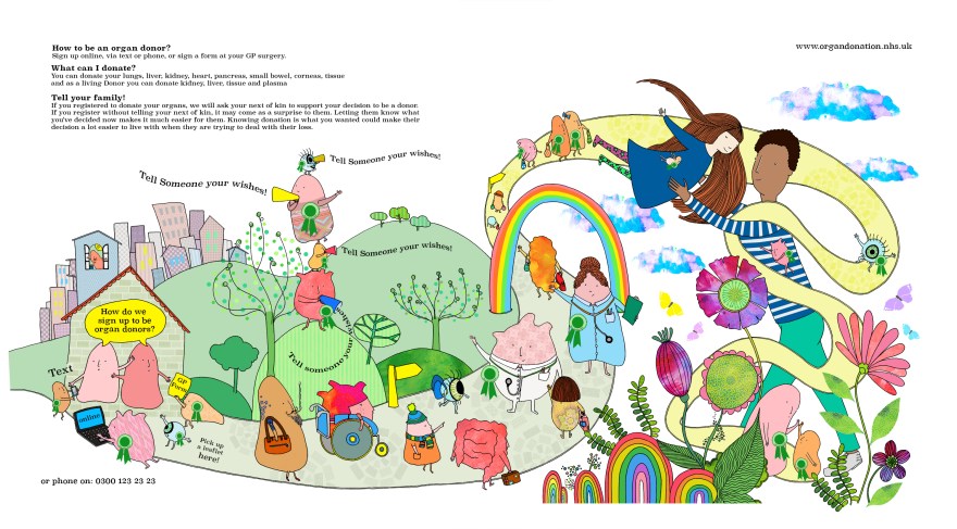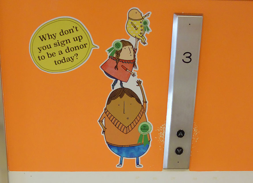 Two murals and a selection of wall stickers for outpatient spaces in the Lister Hospital in Hertfordshire to promote the ‘Organ Donor Register’ and inspire people to sign up to the register.