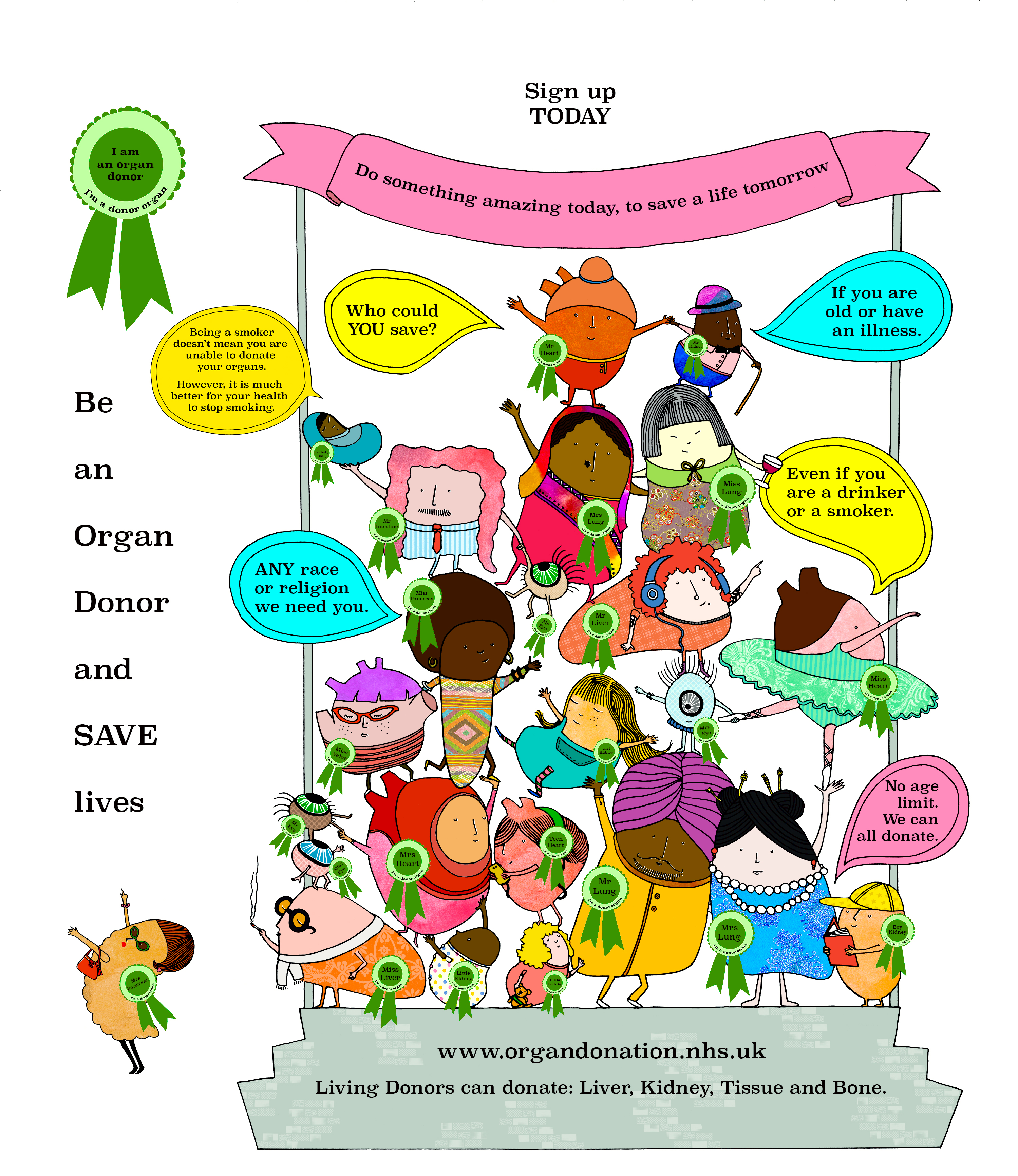 The purpose of the murals and wall stickers is to encourage and inspire people to sign up to the ‘Organ Donor Register’ and to get people talking about organ donation and living donation. We wanted to dispel any myths people may have had about who can be an organ donor, to show that people from all walks of life, ages and nationalities are all desperately needed to help save lives. Also to inform people how they can go about signing up.