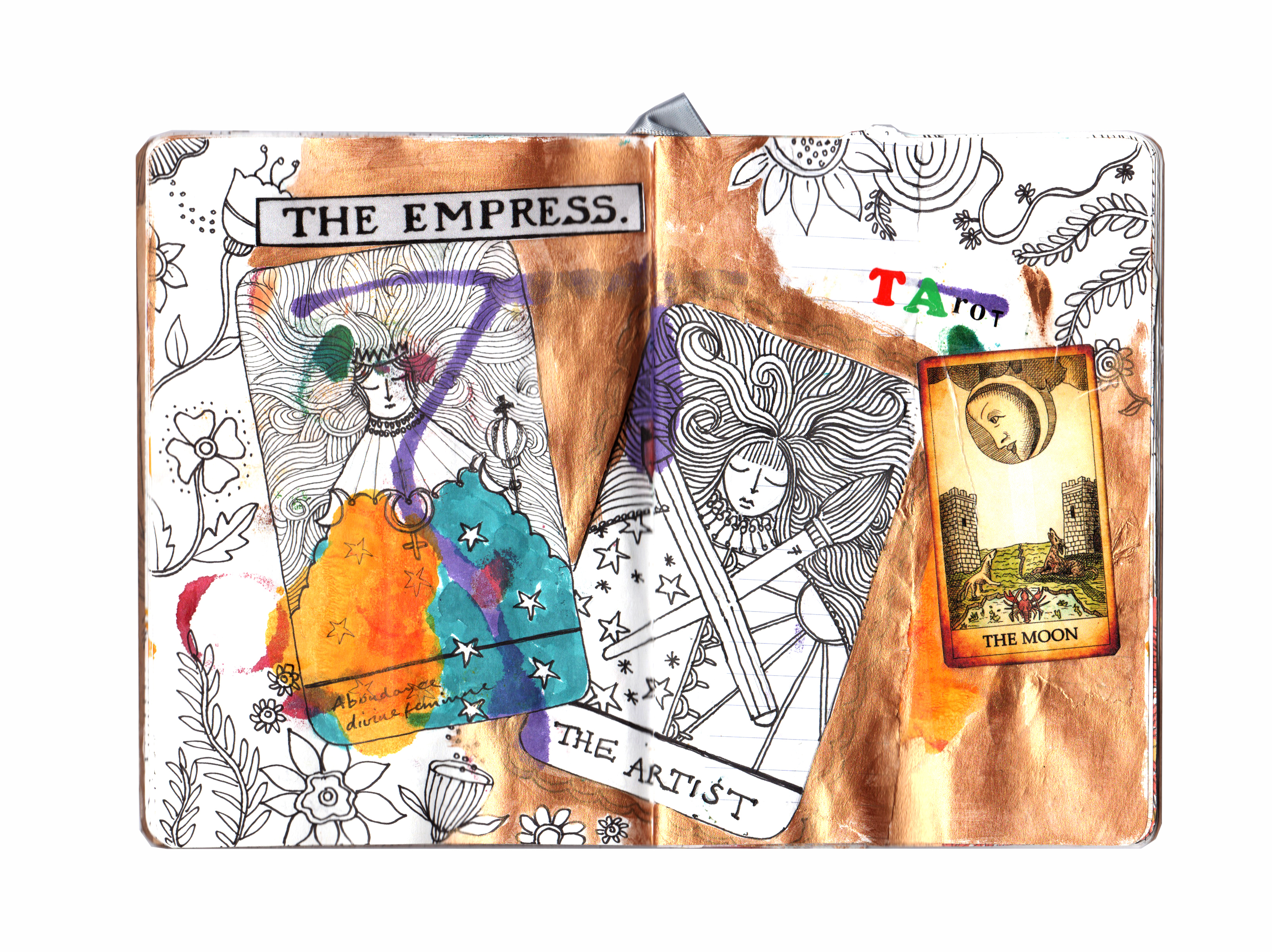 Created in an A5 artists sketchbook and using collage, inks, acrylic paint, pencils, watercolour, lectra set and a wide variety of other materials.