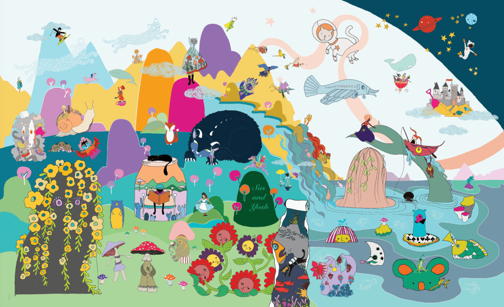 We hope our busy, colourful, magical landscape full of marvellous creatures brings smiles and joy to many people and are delighted to have been able to work with the Lister team again.